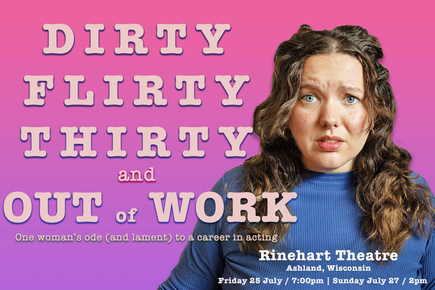 After an opening night to rave reviews in May in Bayfield at Honest Dog Books, Dirty, Flirty, Thirty and Out of Work is back and journeying on to Ashland, Wisconsin. Kara’s laugh-inducing and tear-jerking story of the highs and lows of pursuing a career in acting is on for a two-show weekend at the Rinehart Theatre.